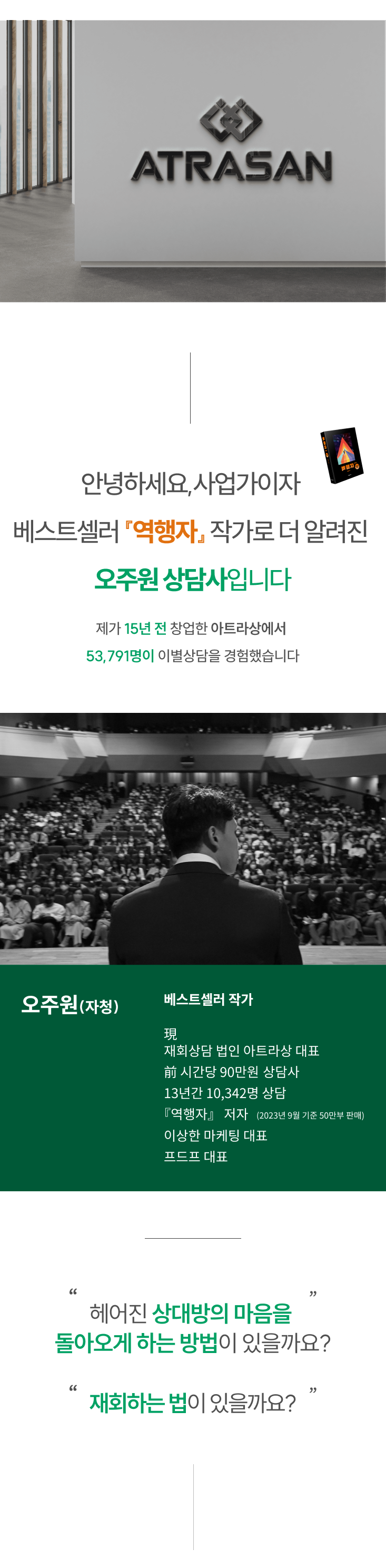 이별 상담 1위 기업 아트라상 창업자로 13년간 1만 건 이상의 유료 상담을 진행했습니다. 시간당 90만원의 상담비와 한 달 대기 리스트를 기록했으며, '재회심리학' 분야를 개척해 25가지 이론을 정립했습니다.