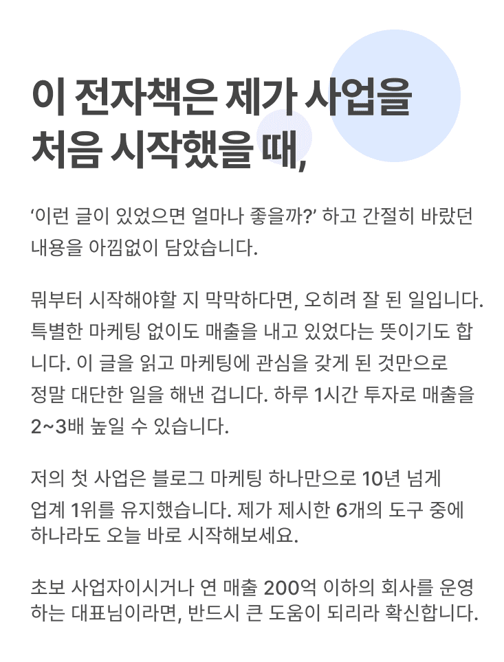 마케팅이라는 부정적인 관념만 갖고 있었는데 이번 기회를 통해 저도 해볼수있다라는 희망을 얻었습니다.
