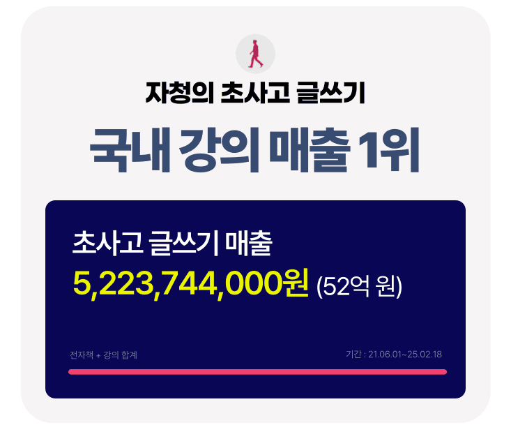 - 초사고 글쓰기 : 국내 강의 매출 1위 : 52억 (2025 2월 기준)