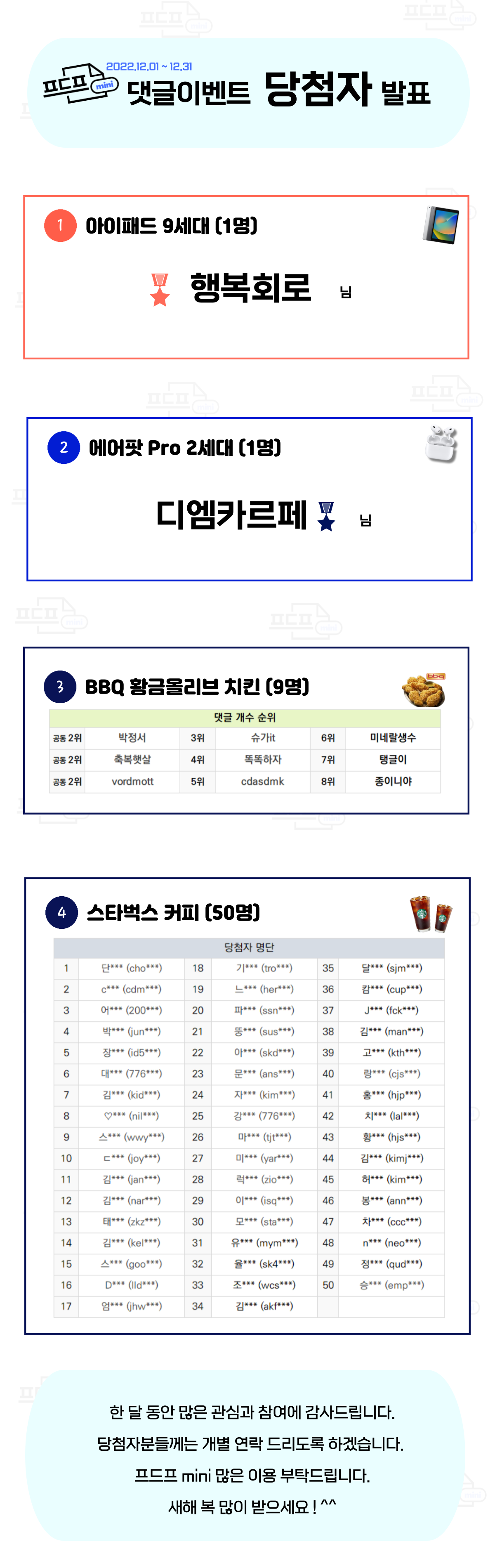 지난 12월 진행한 프드프 mini 댓글이벤트, 당첨자를 공개합니다!